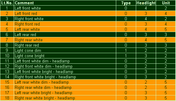 Lights 1, 3, 5, 7, 11, 12 are "Type (0)" , it means sumulated